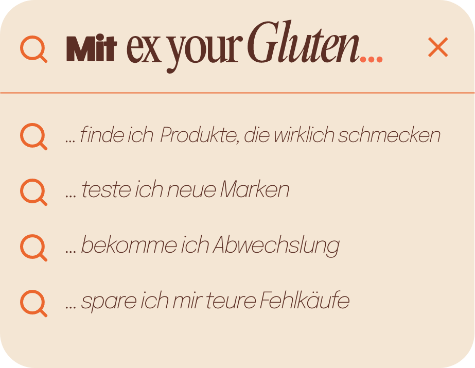 Seit der Zöliakie-Diagnose von Ulas kennen wir den Frust beim glutenfreien Einkaufen nur zu gut und wollen mit ex your Gluten glutenfrei Leben einfacher machen.