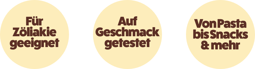 Zertifiziert glutenfreie Produkte, von Zöliakie Betroffenen auf Qualität und Geschmack getestet.